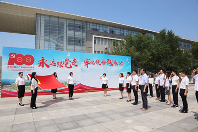 党总支在校部三楼平台举办“重温入党誓词、向党说说心里话”庆祝建党100周年主题活动,学院领导班子、党总支委员、教工党员全体参加。